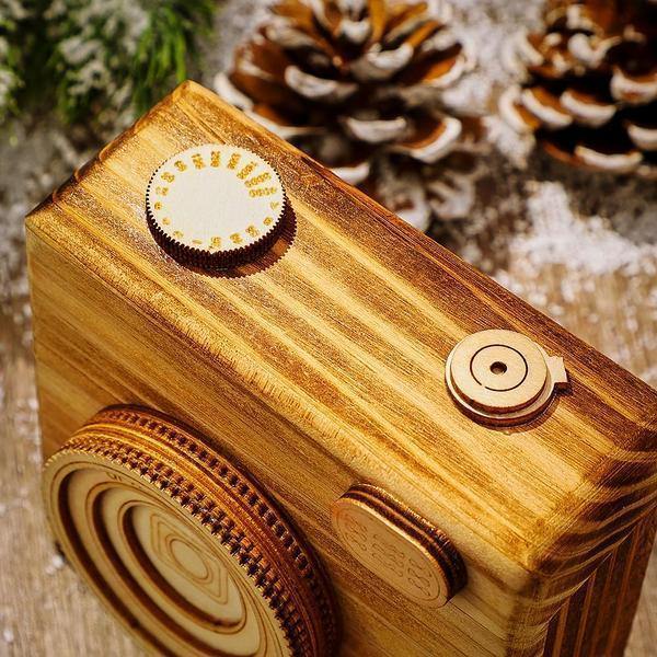 Camera Wooden Box for Film Roll Keychain