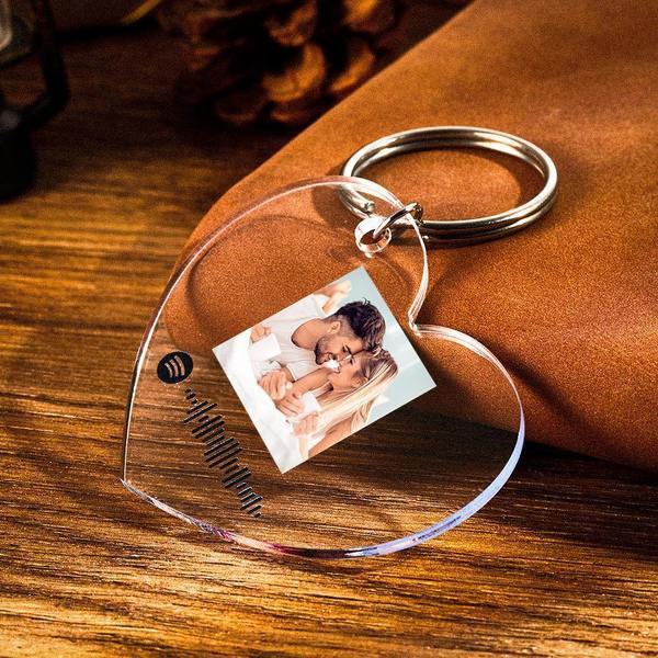 Custom Scannable Spotify Code Keychain Spotify Favorite Song Photo Engraved Keychain Heart-shaped