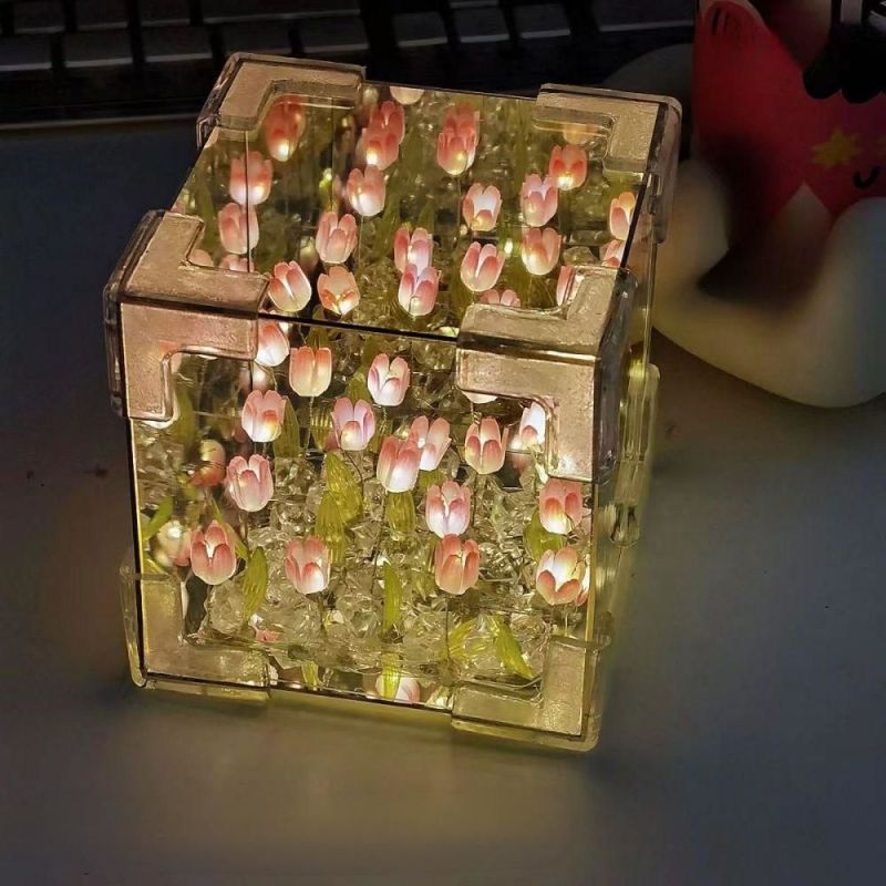 DIY Sea Cube Flower Tulip Lamp Kit Material Package Infinite Garden Acrylic Three-Dimensional Night Lamp Easy Assembly DIY Gift Gift for Girlfriends