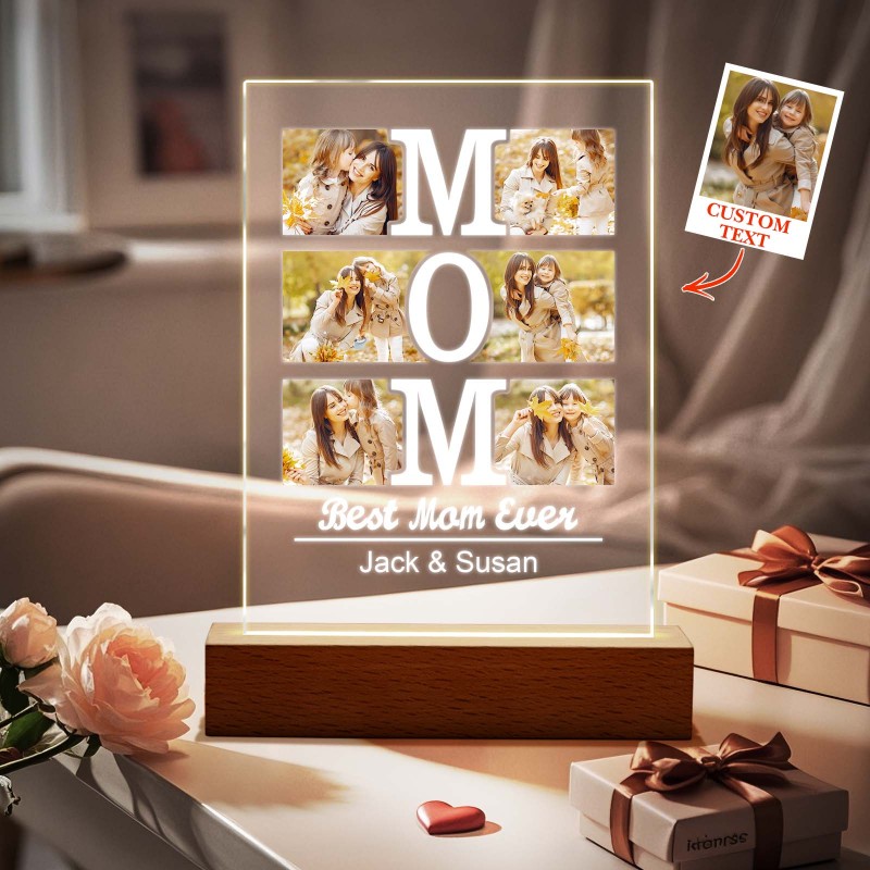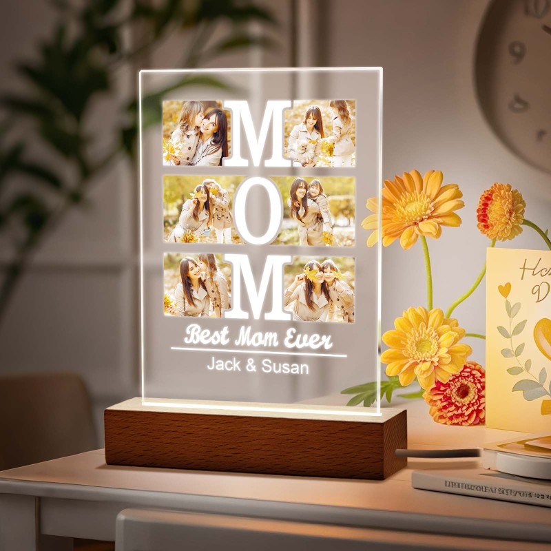 Personalized Acrylic Picture Frame & Night Light for Mom - Customized Mother's Gifts for Birthday