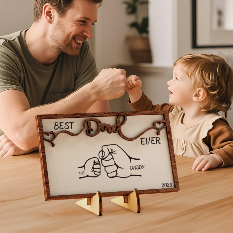Personalized Father's Day Gift, Fist Bump, Dad and Kids Framed Sign, Wooden Sign , Dad's Children names Sign, Family Custom Sign husband