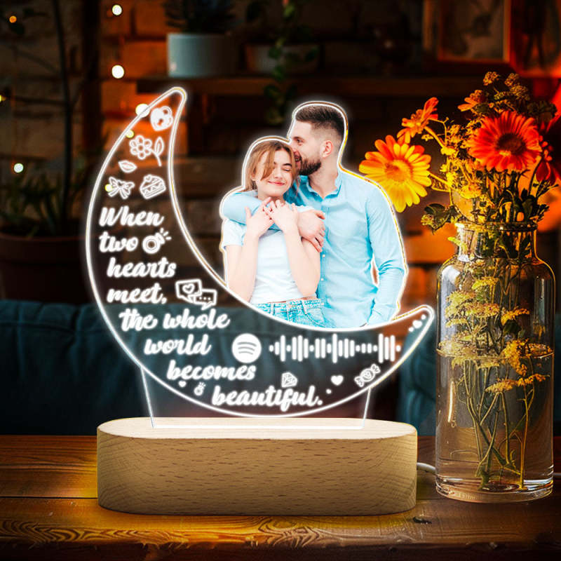 Personalized Photo Acrylic Moon Lamp Custom Night Light Gift for Couple Home Decor