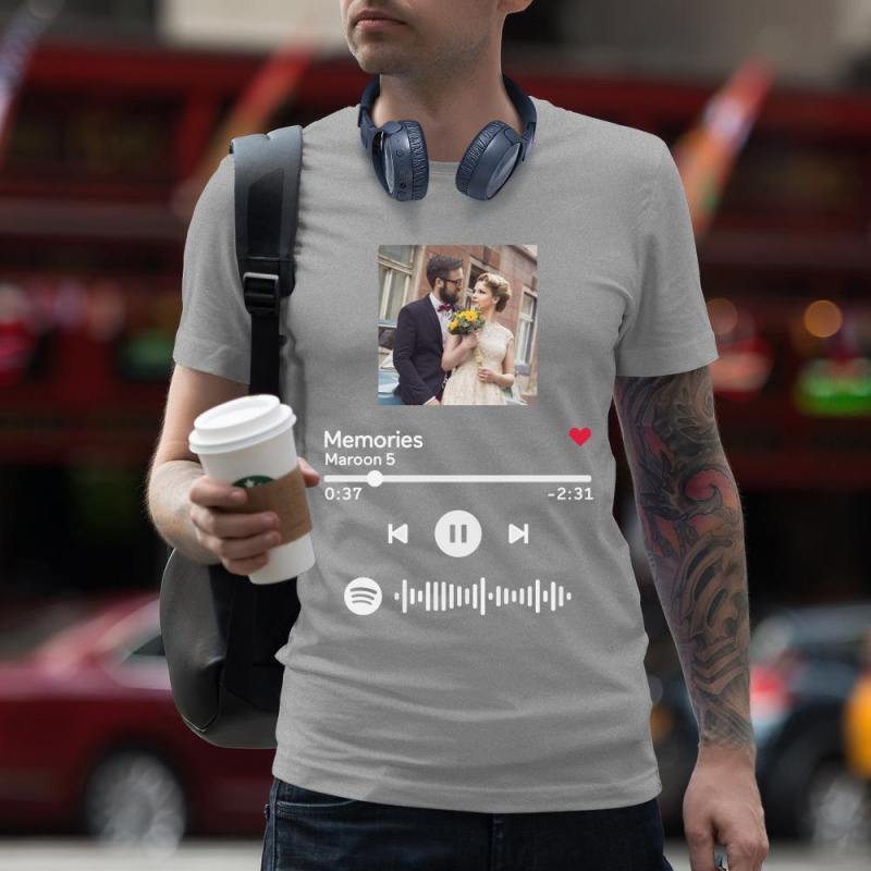 Scannable Spotify Code T-shirt Photo Engraved T-shirt Unique Gift Unisex