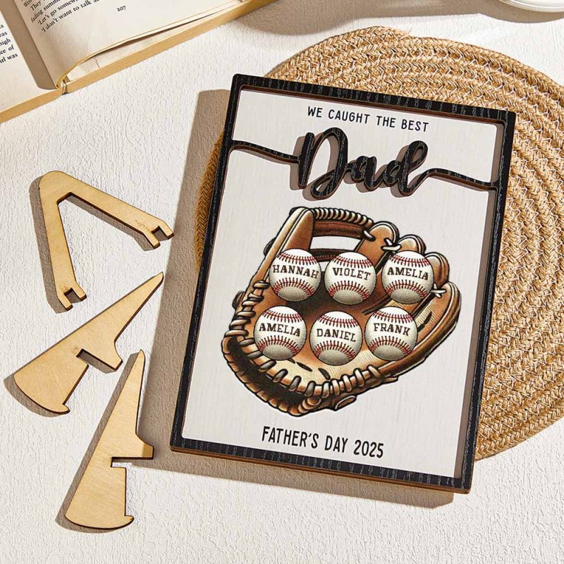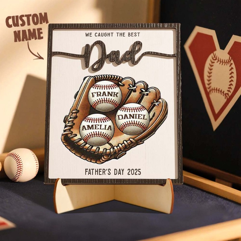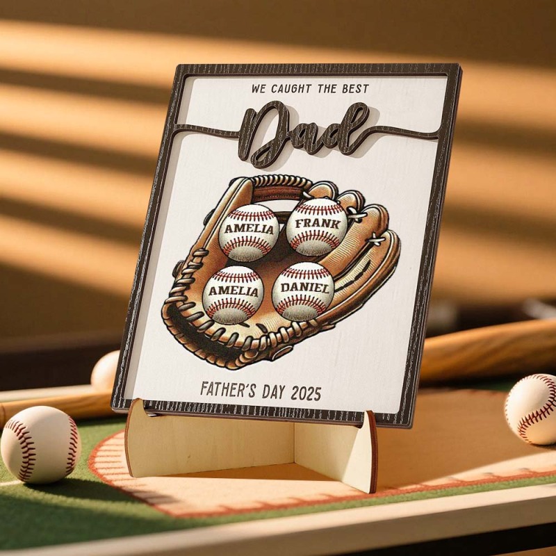 We Caught The Best Dad Baseball, Softball Personalized 2-Layer Wooden Plaque, Custom Kid's Name, Father's Day Gift For Husband, Gift For Dad